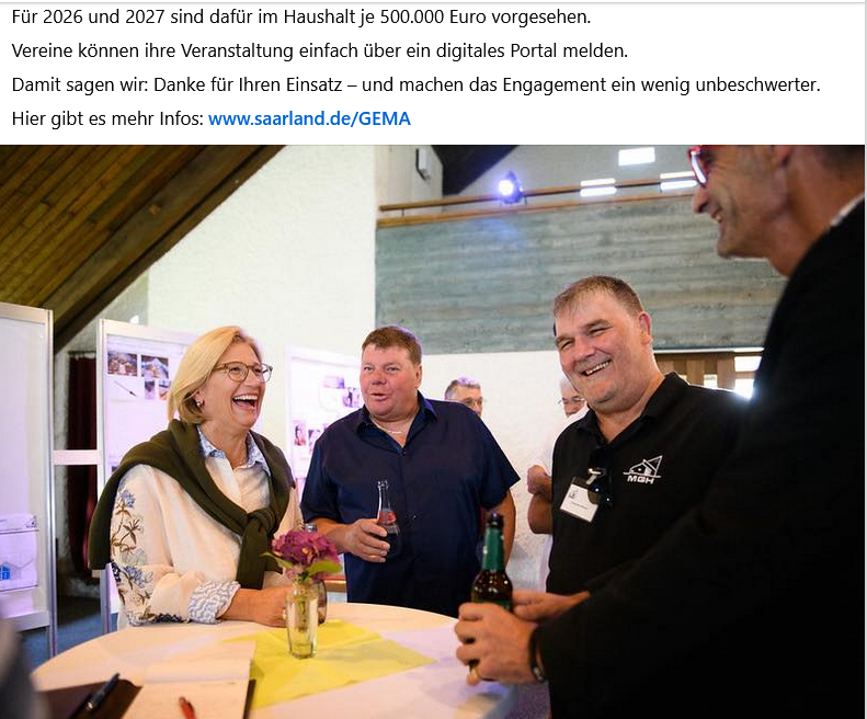 Landesregierung übernimmt GEMA-Kosten für Vereine Saarland entlastet Ehrenamt Ministerpräsidentin Anke Rehlinger verkündete auf ihrem diesjährigen Neujahrsempfang eine gute Nachricht für…